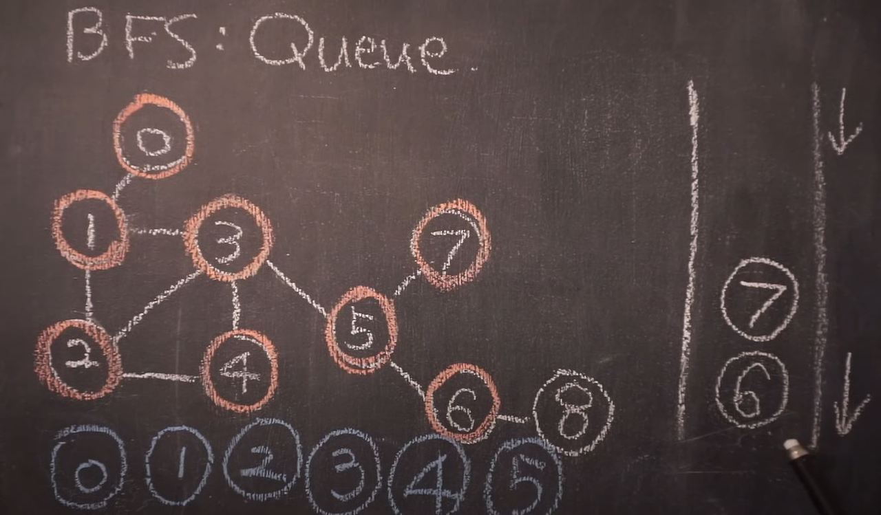 8. 이 후 6번 노드를 꺼내 출력하고, 그 인접 노드인 8번 노드를 큐에 담았다.