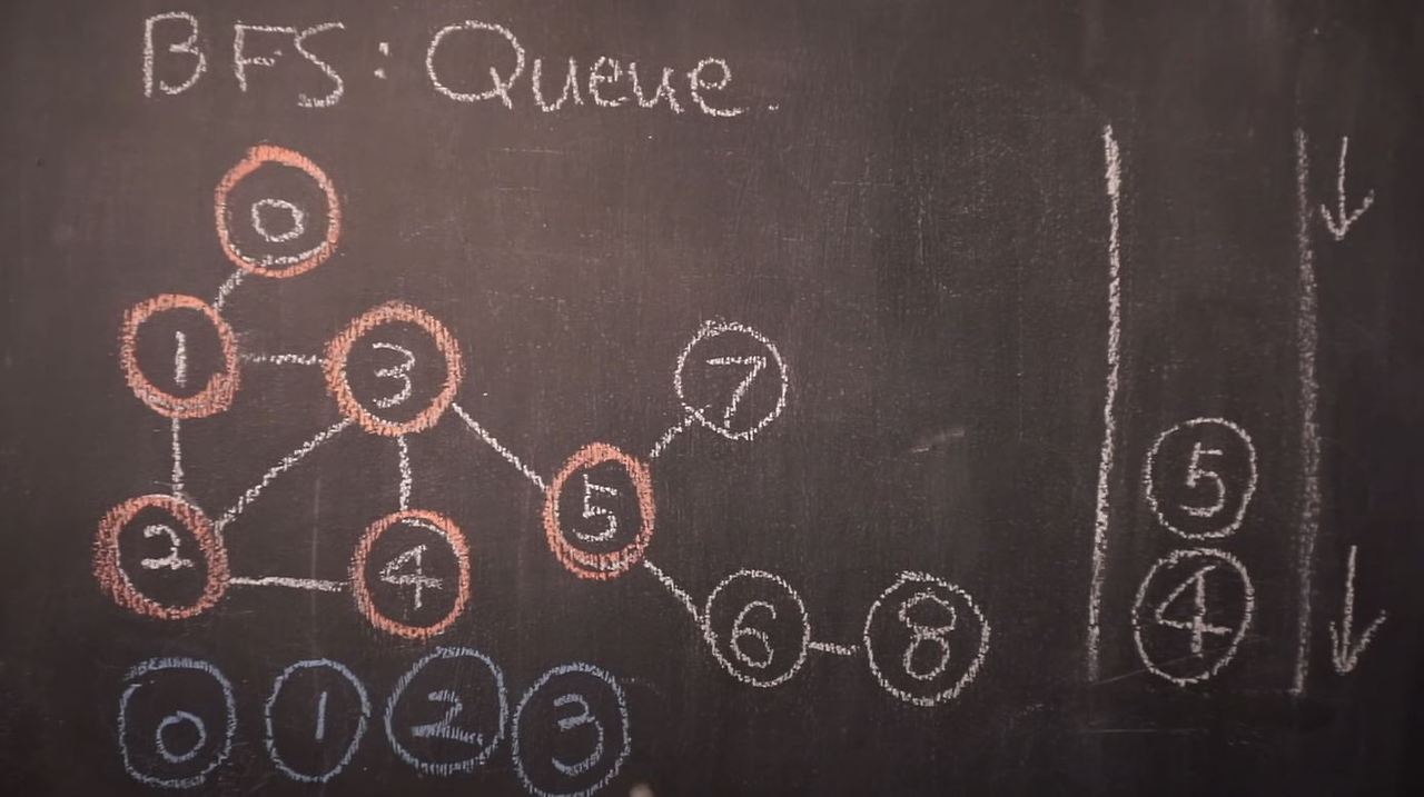 5. 이 후 3번 노드를 꺼내 출력하고, 그 인접 노드인 5번 노드를 큐에 담았다.