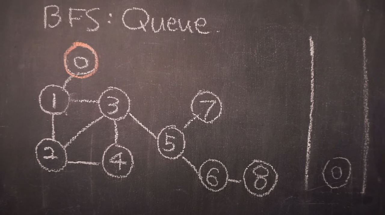 1. 먼저 시작 노드인 0번 노드를 큐에 담았다.