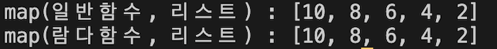 만약에 map의 인자로 사용할 함수가 일회성이거나 매우 짧은 경우에는 람다 함수를 사용해서 넘기는 게 좀 더 효율적 일 것입니다.