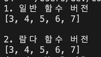이렇게 람다 함수는 map 함수와 같이 사용자 정의 함수를 받을때 유용하게 작성할 수 있습니다.