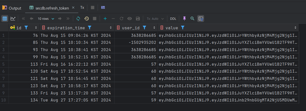 값으로는 리프레시 토큰 값이 저장되도록 구현했다.