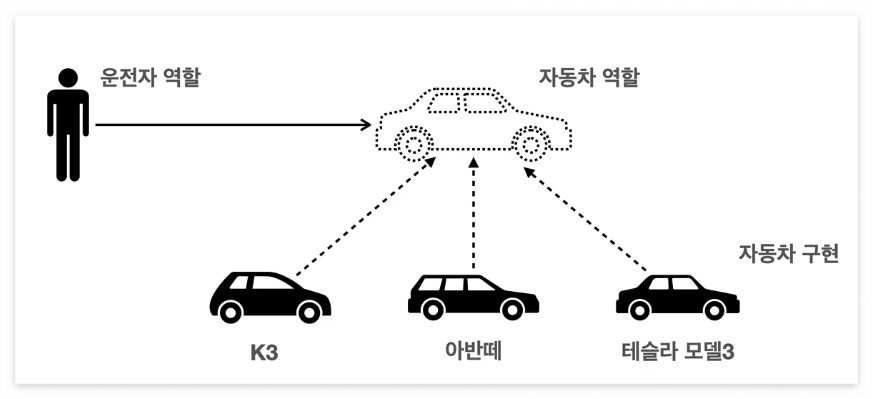 ex ) 위에 나왔던 공연의 예시처럼 배역만 만들어두고 배우는 언제든지 유연하게 변경할 수 있도록 설계
